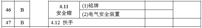 (22)增加4.12項(xiàng),項(xiàng)目及類別為:“扶手 B”,檢驗(yàn)內(nèi)容與要求為:“供乘客抓握的扶手、立柱等裝置應(yīng)當(dāng)固定可靠”;