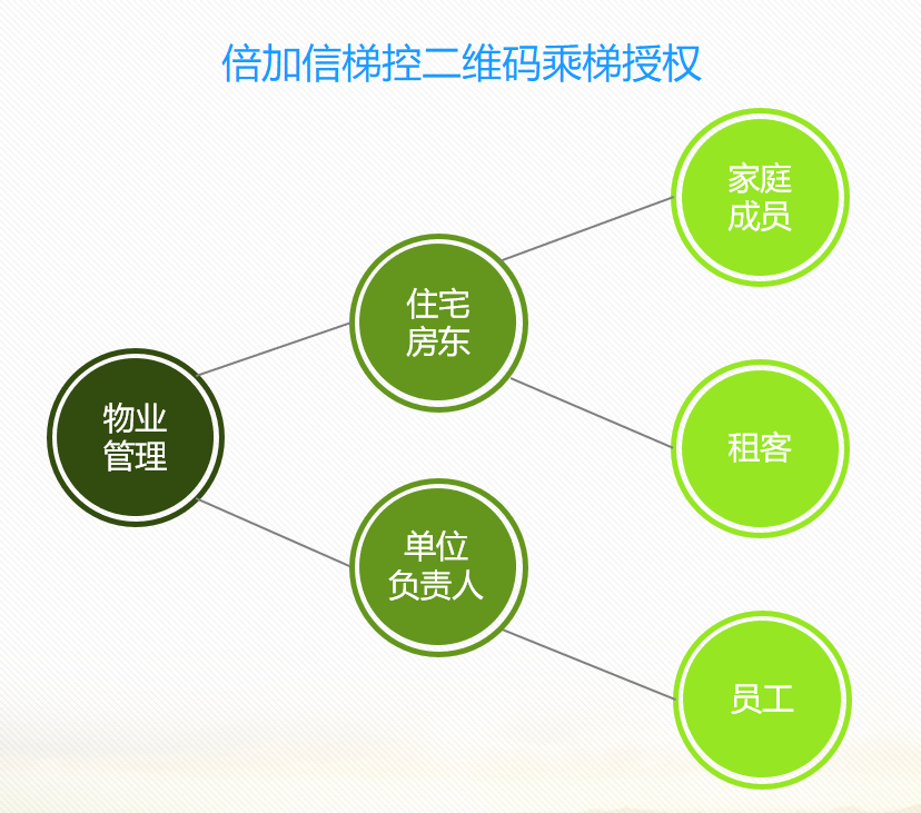 第三方應(yīng)用:我司二維碼梯控系統(tǒng)可與第三方應(yīng)用對接,比如住宅、寫字樓、醫(yī)院等已經(jīng)有自己的小程序、公眾號或者地產(chǎn)APP、園區(qū)APP等,我司提供梯控系統(tǒng)二維碼生成規(guī)則,第三方應(yīng)用可在現(xiàn)有應(yīng)用中直接生成乘梯二維碼,避免讓業(yè)主/員工用多個手機應(yīng)用。 二維碼乘梯授權(quán)方式