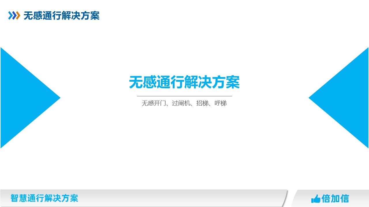 在高檔住宅、寫字樓、企事業(yè)單位等場所,開門、過閘機、招梯、乘梯等要求通行更加智能化,無需刷卡、刷碼、不需要主動刷臉識別等,就可以無感通行。