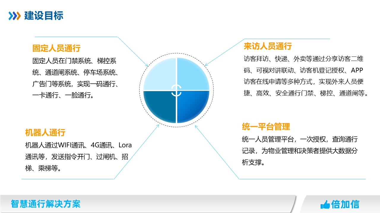 固定人員在門禁系統(tǒng)、梯控系統(tǒng)、通道閘系統(tǒng)、停車場(chǎng)系統(tǒng)、廣告門等系統(tǒng),實(shí)現(xiàn)一碼通行、一卡通行、一臉通行。