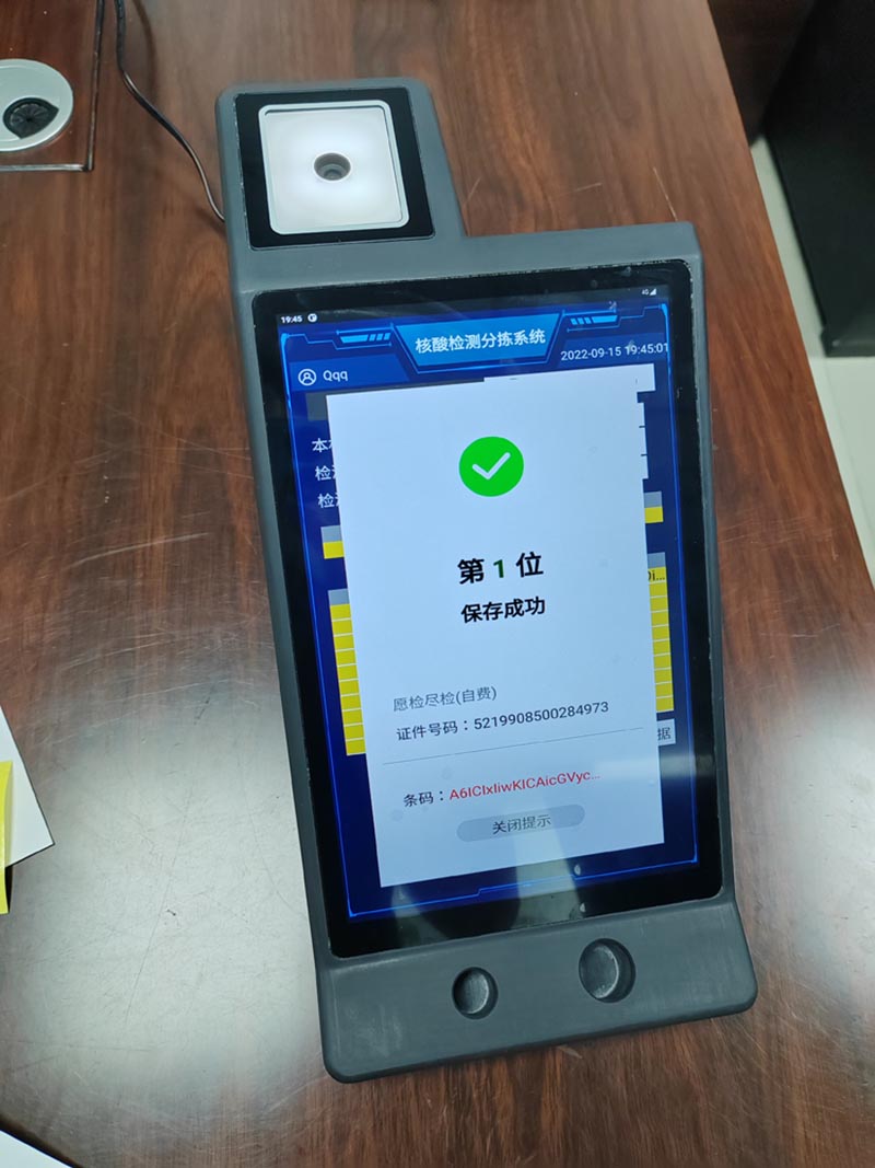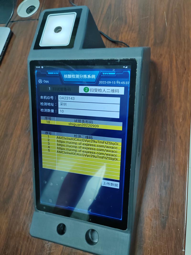 5、依次進行,滿了5人或者10人或者20人后,系統(tǒng)提示掃試管碼,同時上報數(shù)據(jù)給衛(wèi)健委平臺;
