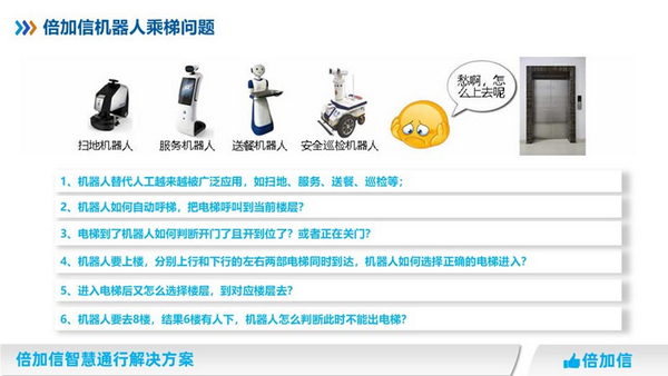 在一些高層建筑或是人流密集區(qū)域的電梯,由于使用頻繁,可能會存在電梯故障或事故的風(fēng)險。而機器人倍加信梯控的作用,正是在這些情況下起到了保護(hù)和預(yù)警的作用。