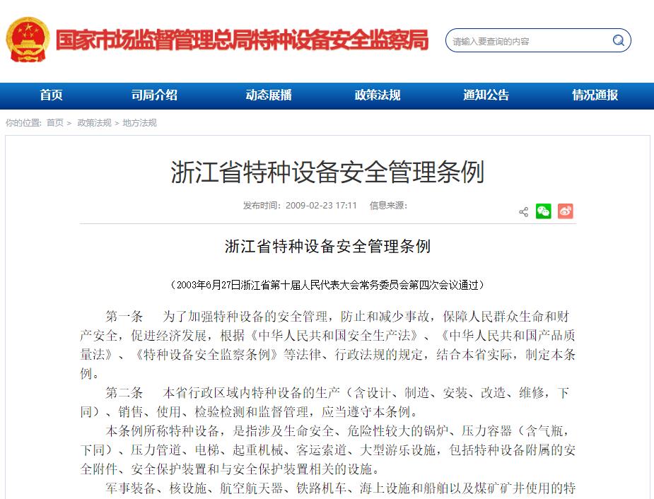 浙江省特種設(shè)備安全管理條